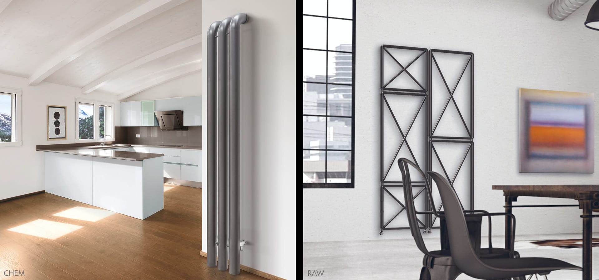 Steel tube triumphs for the purity of its lines. Innovative and original design, dynamism and functionality, style and elegance, efficiency and experimentation, transform the heating element a surprising shape that plays a key role in the room’s furnishing and décor: something to exhibit sure to surprise.